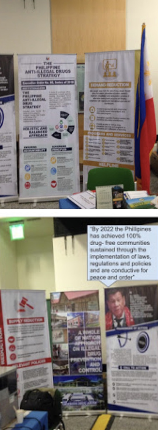 CND er fullt av motsetninger og alle har her muligheten for å presentere sitt syn når det gjelder narkotikapolitikk. Rett overfor boden om Stigma sto Filippinene med sin stand.
