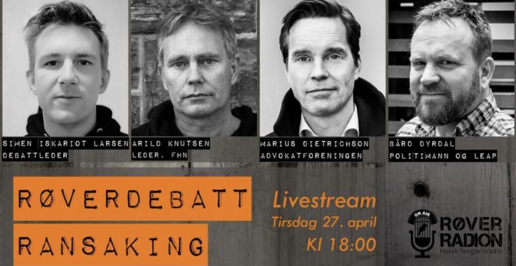 Tirsdag 27. april arrangerte Røverradion debatt om ransaking. Debatten har kommet i kjølvannet av rusreformen, der det viser seg at det er en etablert praksis hos politiet å begå mer integritetskrenkende tiltak enn det loven sier at er forholdsmessig.