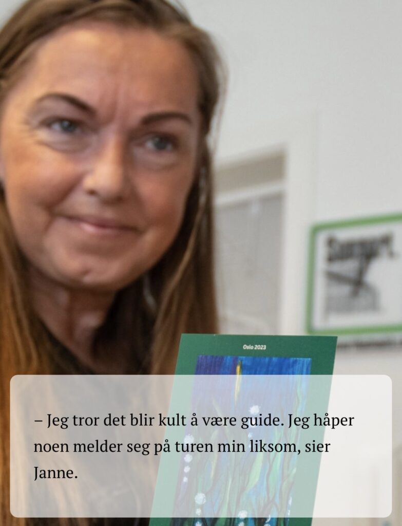 Hun ønsker å hjelpe. Det har hun alltid likt. Og grunnen til det, er at hun vil at folk skal slippe å kjenne på den samme stigmatiseringen og utenforskapet hun har følt på selv. Jobben gir dessuten noe tilbake. – Det å bli sett på som et menneske, og at de guidede turene kan bidra til å føle på mestringsfølelse. At man får følelsen av å bety noe for samfunnet likevel. Ha noe å gå til. Janne Bøhmer Killingstad balanserer kaffekoppen nederst på notatblokka.