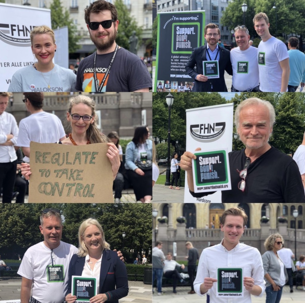 I Norge inviterte brukerorganisasjonene proLAR Nett og Foreningen for human narkotikapolitikk til markering av Verdens narkotikadag på Eidsvolls plass utenfor Stortinget.